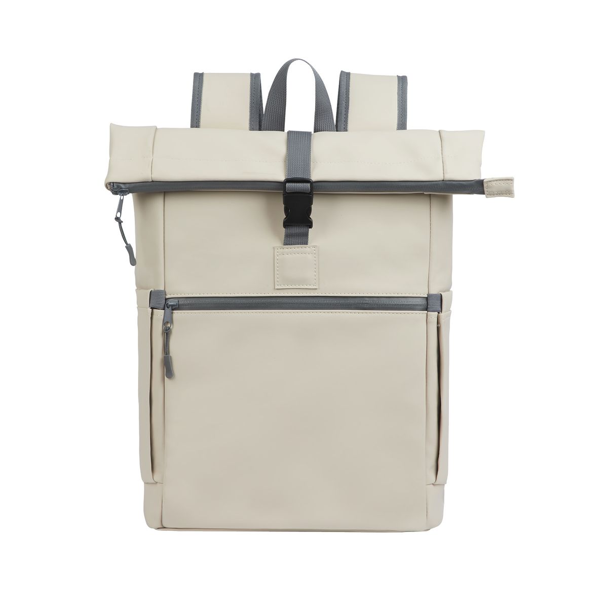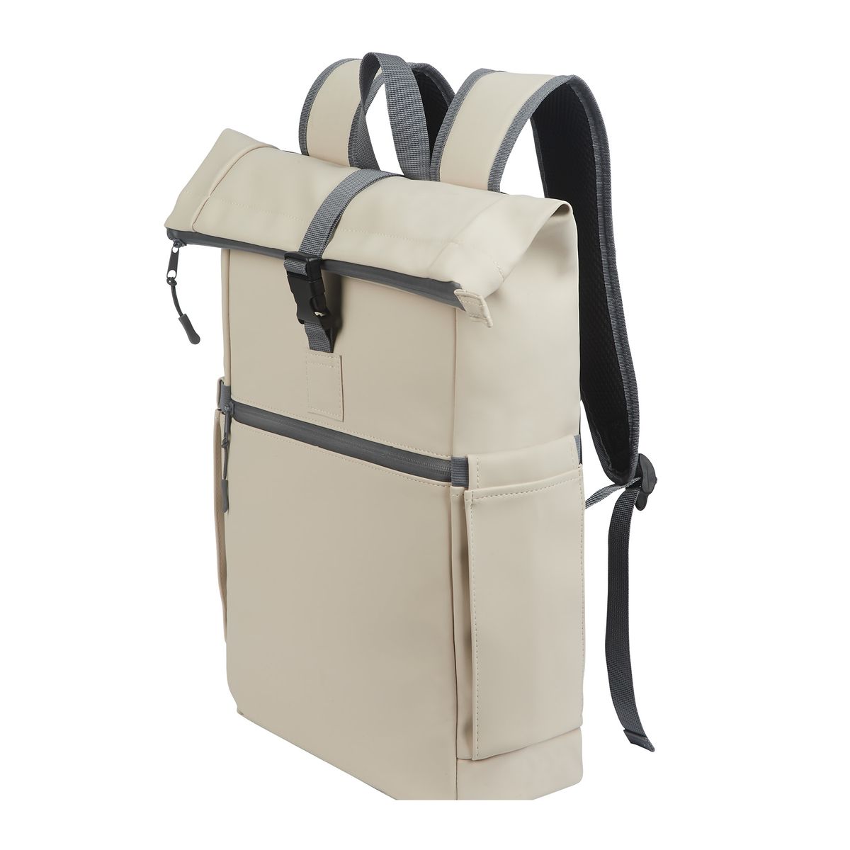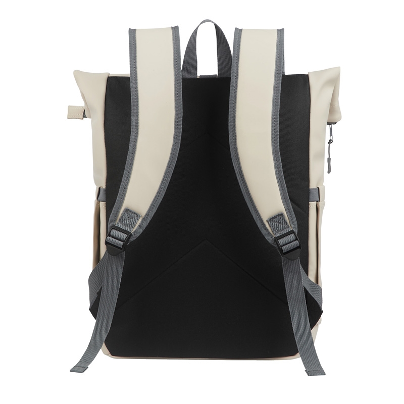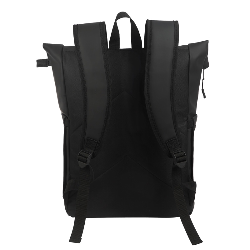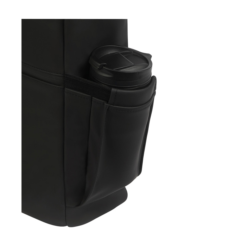 Providing durable protection for your belongings, the Casey PU Roll-Top Backpack is a stylish and dependable bag for everyday use. Whether commuting, vacationing or day trips to the city, this bag's smooth touch material is durable, versatile and water-resistant making it an urban essential. This backpack features top access to the spacious rucksack style zippered main compartment, a padded computer pocket for electronics, a front exterior zippered pocket, and 2 elastic side pockets perfect for holding water bottles. Carry the Casey using its top handles or the adjustable padded shoulder straps. Laptop compartment size is 11 ¼”W x 15”H. Due the shape of the bag, it may accommodate up to 17” H.